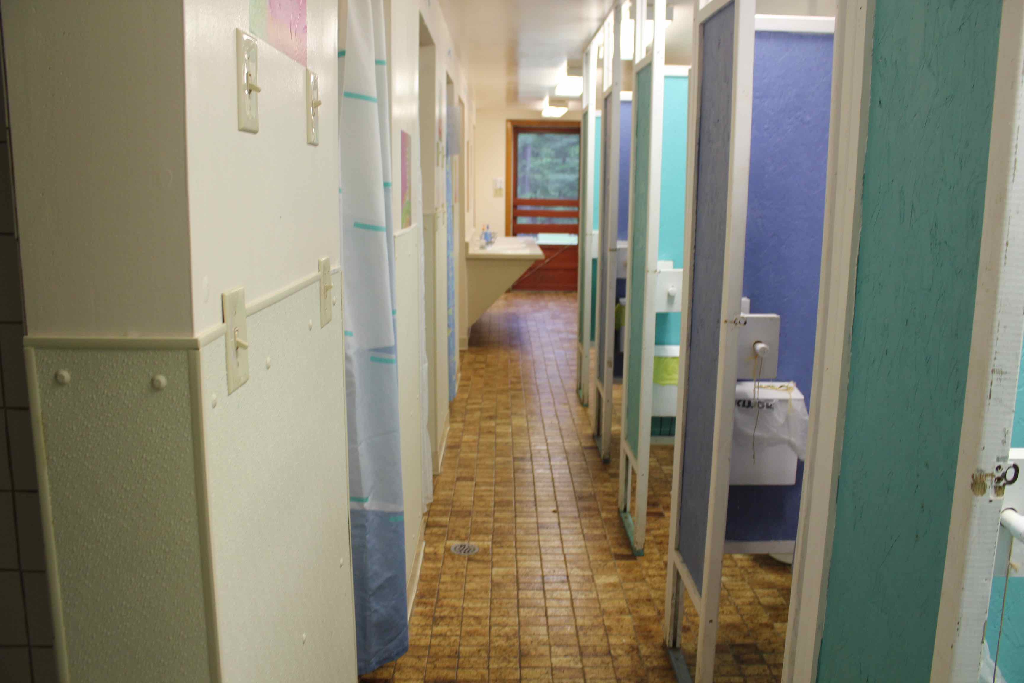Nested in a grove of pine trees are 8 camper cabins and 5 counselor cabins. Each cabin sleeps up to 8 and has bunk beds, screened windows, and overhead lighting.